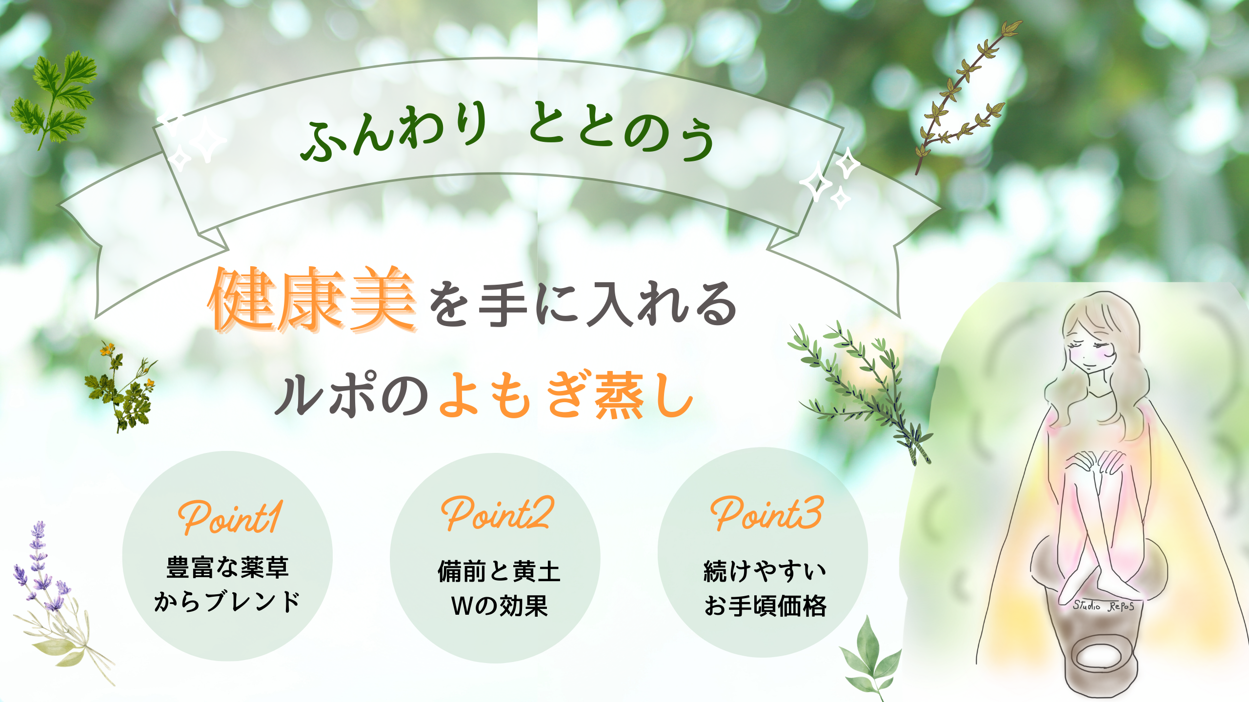 まずはルポの「よもぎ蒸し」を、お電話かサイトより、お気楽にお申込みください。